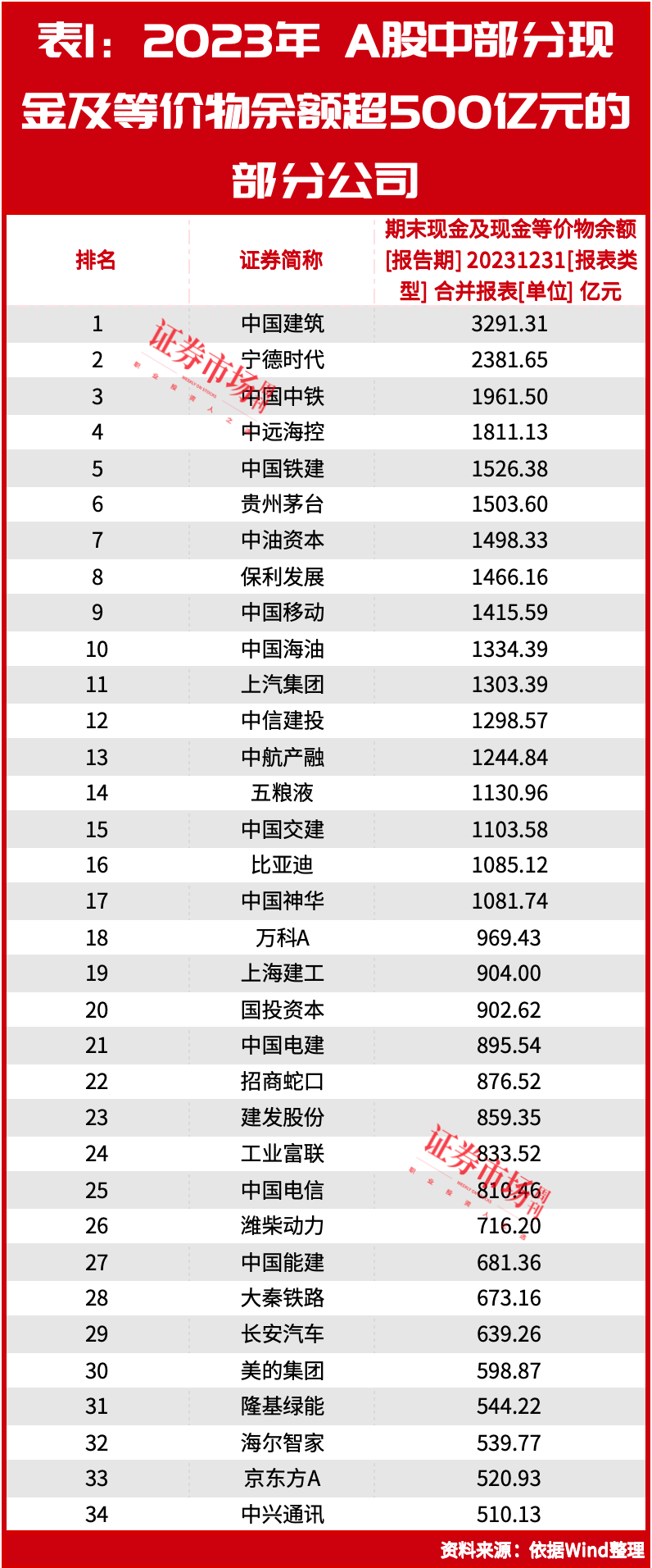 除了自身纵向的数据增长,在整体5000多家A股公司中,美的现金流数字也非常靠前。剔除金融股(银行、保险、券商)和两桶油(中国石油(8.860, -0.17, -1.88%)、中国石化(6.590, 0.03, 0.46%)), 美的集团2023年的现金及等价物的数字排到30位(见表1)。需要强调的是,前30名中大型央国企不在少数。