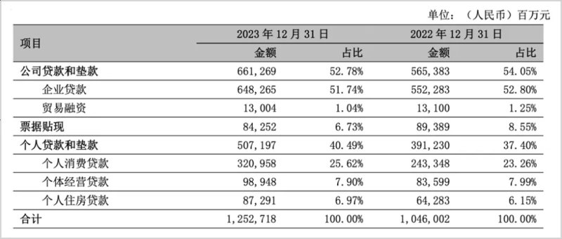 截至2023年末,宁波银行个人贷款规模超过5000亿元,占贷款总额的40.49%,而其中消费贷业务占据了零售贷款的半壁江山以上,占比超过60%。