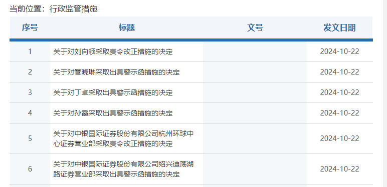 10月22日,浙江证监局连发6张罚单,剑指中银证券两家营业部的违规行为,并“点名”了相关问题责任人和当事人。