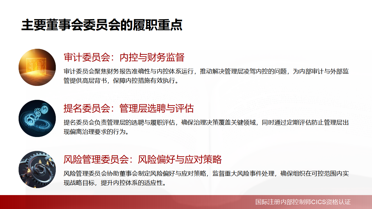 内部控制术语讲解11:董事会(包括主要董事会委员会)在内部控制体系中,“董事会(包括主要董事会委员会)”是组织顶层治理的核心机构,其核心内涵是由股东...