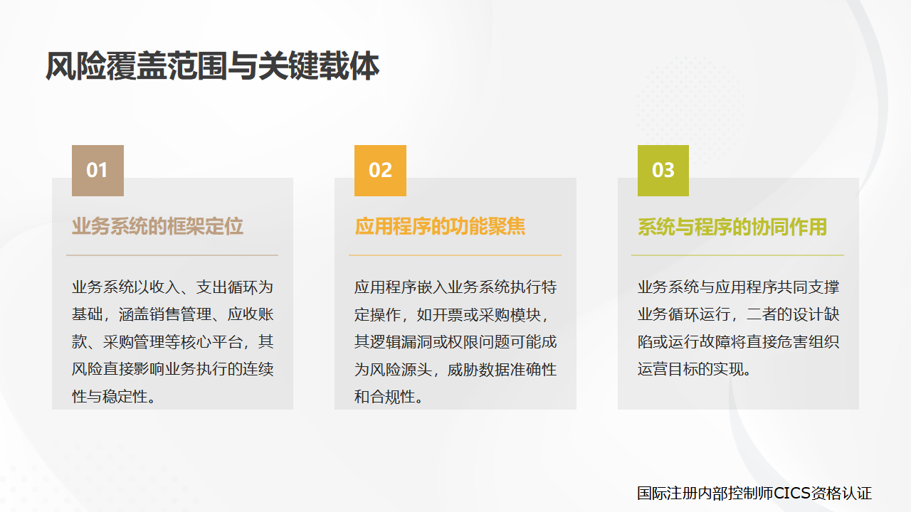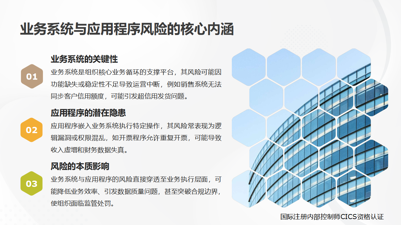 内部控制术语讲解12:业务系统 /应用程序风险在内部控制体系中,“业务系统/应用程序风险”是聚焦组织核心运营环节、直接关联业务循环有效性...