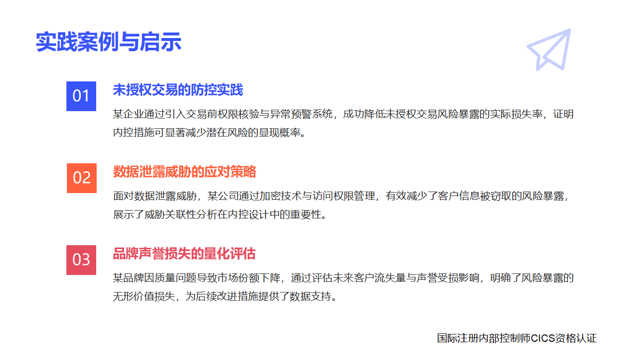国际注册内部控制师CICS资格认证项目,专为志在内部控制、风险管理与合规领域深耕的专业人士打造,将帮助你快速提升专业影响力,赢得企业高管及行业认可,成为引领组织稳健发展的关键力量。