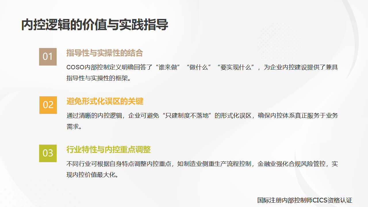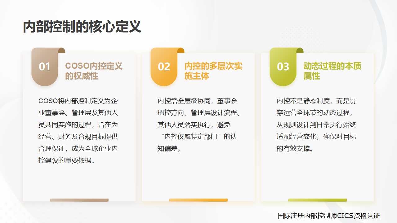 国际注册内部控制师CICS资格认证项目,专为志在内部控制、风险管理与合规领域深耕的专业人士打造,将帮助你快速提升专业影响力,赢得企业高管及行业认可,成为引领组织稳健发展的关键力量。