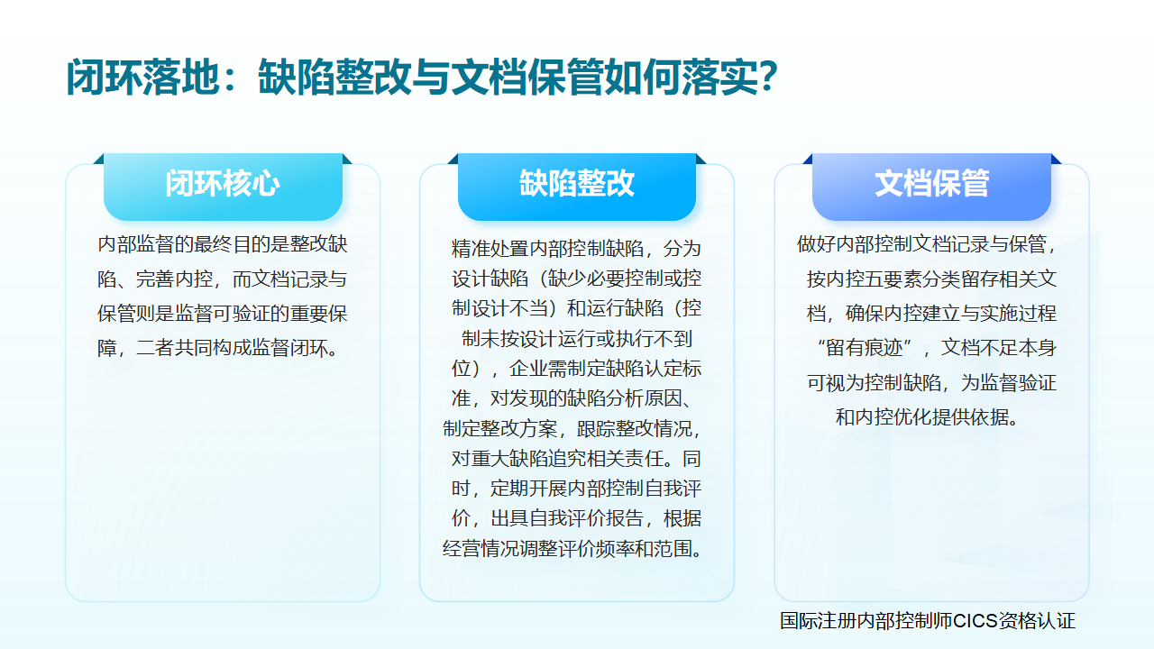 内部监督的最终目的是整改缺陷、完善内控,而文档记录与保管则是监督可验证的重要保障,二者共同构成监督闭环。